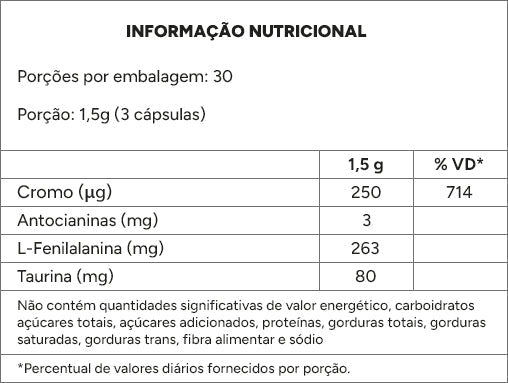 ✅ Picolinato de Cromo – Estabiliza os níveis de glicose, evitando picos de insulina.